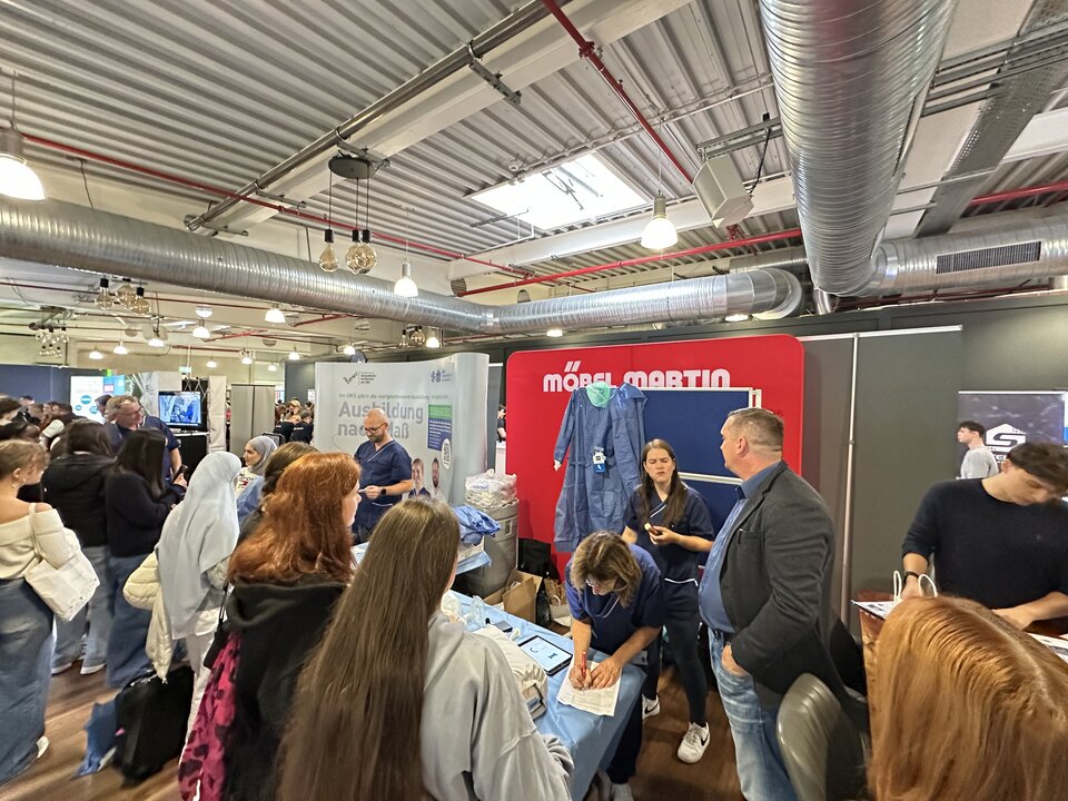 Zahlreiche interessierte Jugendliche besuchten unseren Stand und nutzten die Gelegenheit, mehr über die spannenden Ausbildungswege am UKS zu erfahren. Besonders beliebt waren unsere Mitmachaktionen: Ob Reanimation an der Puppe oder erste praktische Übungen mit der laparoskopischen Box – die Besucherinnen und Besucher bekamen hautnahe Einblicke in den Klinikalltag.