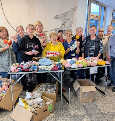 Die Nähgruppe überrascht immer wieder mit neuen Handarbeiten, ist im regelmäßigen Austausch mit Mitarbeiterinnen und Mitarbeitern aus der Kliniken. Gibt es irgendwo einen Bedarf, stehen die Nadelspielkinder bereit. So kommt es regelmäßig vor, dass die fleißigen Handarbeits-Profis bei ihren Spendenübergaben die eine oder andere Überraschung aus der Tasche ziehen. Und auch bei Sonderprojekten ist auf die Nadelspielkinder absoluter Verlass. So konnte sich die Onkologische Fachpflege in diesem Jahr über einen ganz besonderen Artikel freuen, der an dieser Stelle noch nicht verraten wird. Denn vor Weihnachten wird es in diesem Zusammenhang noch eine schöne Überraschung für Patientinnen und Patienten geben.
