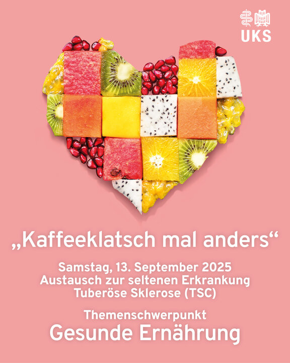 Am Samstag, 13. September 2025, findet ab 15 Uhr am Universitätsklinikum des Saarlandes (UKS) in Homburg ein Austausch zur seltenen Erkrankung Tuberöse Sklerose (TSC) statt. Veranstaltungsort ist der Seminarraum 1 im Zentralen Hörsaalgebäude (Geb. 35) auf dem Homburger Campus. Unter dem Titel „Kaffeeklatsch mal anders“ können sich Familien mit betroffenen Kindern, erwachsene Patientinnen und Patienten und alle Interessierten über die Erkrankung informieren und austauschen. Zudem werden Expertinnen des UKS Vorträge halten und für Fragen zur Verfügung stehen. Themenschwerpunkt beim Treffen ist die gesunde Ernährung bei TSC.
