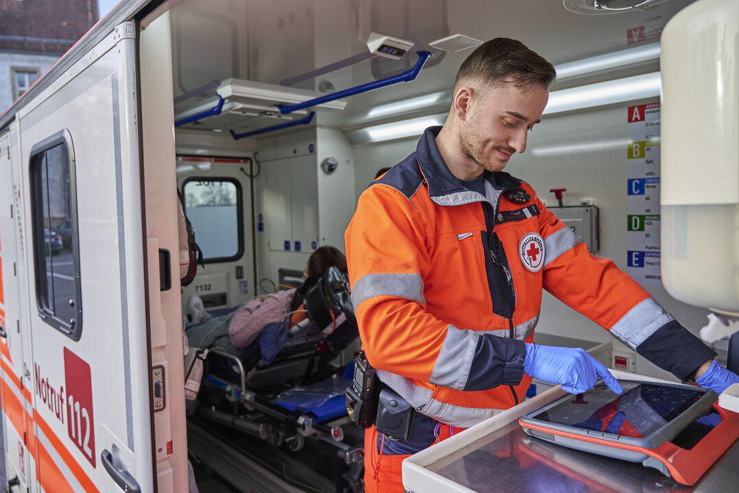 Der Rettungsdienst, die Integrierte Leitstelle und die Klinik sind über NIDAklinik als digitale Plattform miteinander vernetzt. Über ein Tablet können Notärzte und Notärztinnen bzw. das nichtärztliche Fachpersonal des Rettungsdienstes bereits im Rettungswagen wesentliche Informationen wie Vitalparameter, Notfallprotokolle und Fotos erheben und an die Zielklinik versenden. Noch bevor die Patientinnen und Patienten eintreffen, liegen in der Klinik alle relevanten Informationen digital vor und nicht mehr ausschließlich analog. Dank der Anbindung an das Krankenhausinformationssystem wird wertvolle Zeit bei der Übernahme der eintreffenden Notfallpatienten gespart. Außerdem können so Doppeldokumentationen und Zeitaufwände vermieden werden, die durch Archivierung, Ausdrucken, Einscannen und Anlegen der Fälle entstehen.
