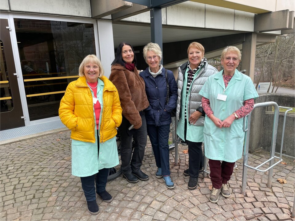 Wie so oft im Ehrenamt, gibt es auch bei den Grünen Damen und Herren Nachwuchssorgen. Von den ursprünglich über zwanzig ehrenamtlich Tätigen im UKS sind zurzeit leider nur noch vier Grüne Damen aktiv – die fünfte im Bunde, Maria Mathei, die seit 2008 als Grüne Dame im UKS unterstützt hat, musste das Ehrenamt nun aufgrund ihres hohen Alters – sie ist stolze 86 Jahre alt – niederlegen. Dennoch trifft sie sich gerne weiterhin mit den anderen: „Den ehrenamtlichen Gedanken kann man so schnell nicht ablegen“, sagt Maria Mathei. „Ich schätze die nette Gemeinschaft in unserer Gruppe, wir kennen uns immerhin schon eine sehr lange Zeit.“ Genau wie ihre noch aktiven Kolleginnen würde sie sich wünschen, dass sie wieder mehr junge Damen oder auch Herren in ihren Kreis aufnehmen könnten. Der jüngste Neuzugang ist Ellen Krippner, die sich seit August letzten Jahres in der Neurochirurgie und Neurologie des UKS engagiert.