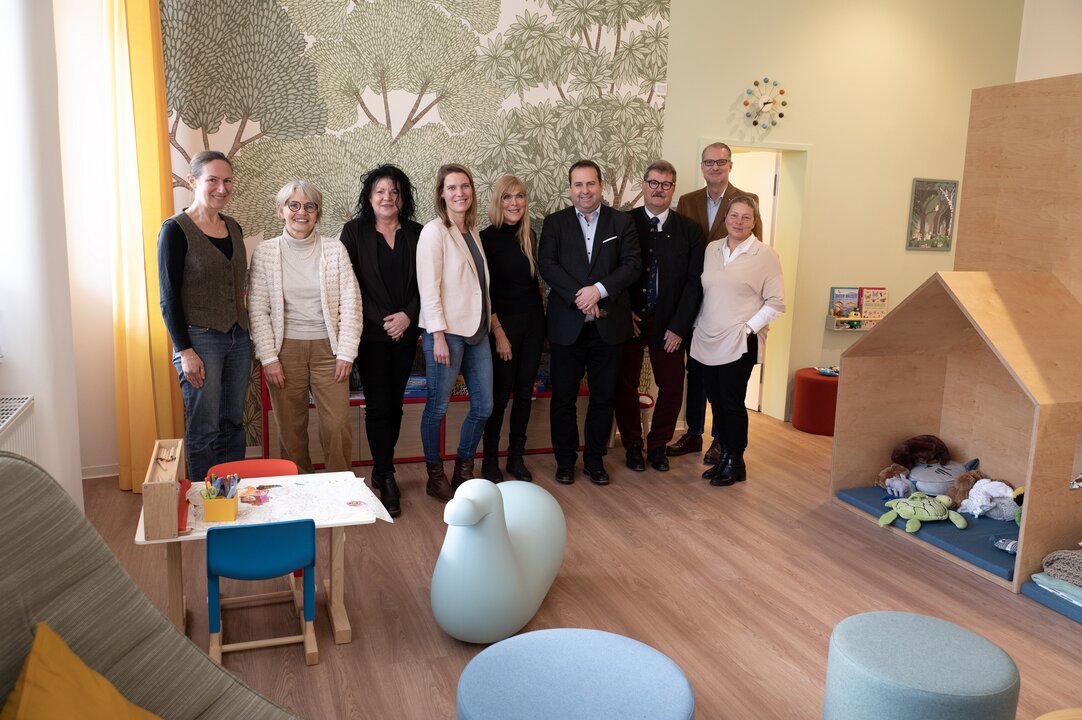 Am selben Tag wie die Kabinettskollegin besuchte auch Dr. Magnus Jung, Minister für Arbeit, Soziales, Frauen und Gesundheit, die Kinderpsychiatrie des UKS, um sich über die Arbeit im Childhood-Haus zu informieren und sich mit dem dortigen Team auszutauschen. Er hat den Aufbau maßgeblich unterstützt, sein Ministerium trägt die Personalkosten. In Hinblick auf die gerade bekannt gewordenen Pläne für ein erstes Childhood-Haus im benachbarten Rheinland-Pfalz betonte er: „Ich freue mich sehr darüber, dass es uns gemeinsam gelungen ist, mit der Einrichtung des Childhood-Hauses auf dem UKS-Campus eine nach international anerkannten Standards zertifizierte Anlaufstelle für von Gewalt betroffene Kinder und Jugendliche zu schaffen, die durchaus Modellcharakter für entsprechende Pläne in anderen Bundesländern hat. Die hier etablierte Zusammenarbeit von Polizei und Justizbehörden mit Ärzten und Psychologen ist vorbildlich. Sie stellt die Bedürfnisse der betroffenen Kinder und Jugendlichen konsequent in den Mittelpunkt und trägt zugleich dazu bei, Unrecht aufzudecken und erlittene Gewalterfahrungen besser zu verarbeiten. Anlässlich des ersten Jahrestages möchte ich allen Beteiligten ausdrücklich für Ihr Engagement danken.“