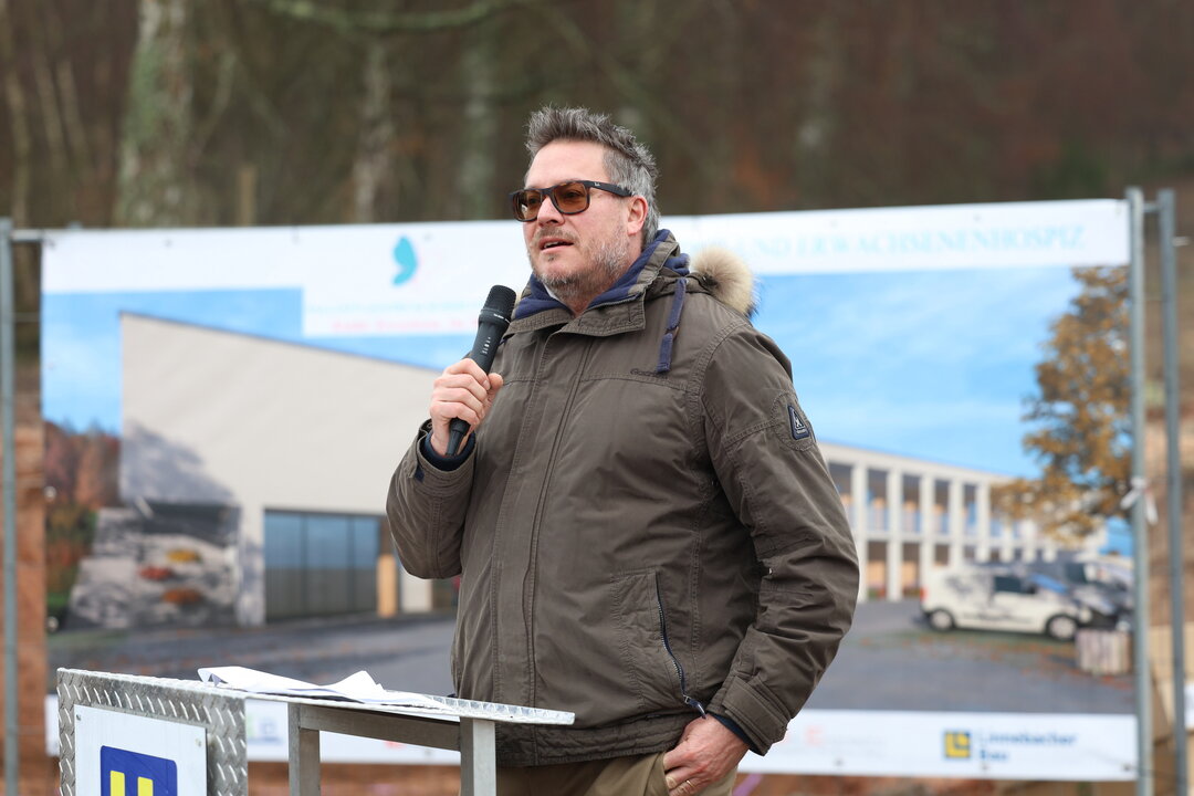 Staatssekretär David Lindemann sprach in Vertretung der erkrankten Ministerpräsidentin des Saarlandes, Anke Rehlinger. Das Land habe gerne das Filet-Grundstück zur Verfügung gestellt, die Erschließungsmaßnahmen getragen und auch eine Anschubfinanzierung geleistet. „Es ist das einzige Hospiz, das für Kinder und Erwachsene da ist – dieser Stern wird weit strahlen. Ein Hospiz muss nicht ein trauriger Ort sein, sondern hier in Homburg wird ein Ort der Wärme entstehen, bei dem man Mut und Unterstützung finden kann, frei von Schmerzen, frei von Leid, eben ein bestmöglicher Weg, Abschied zu nehmen.“