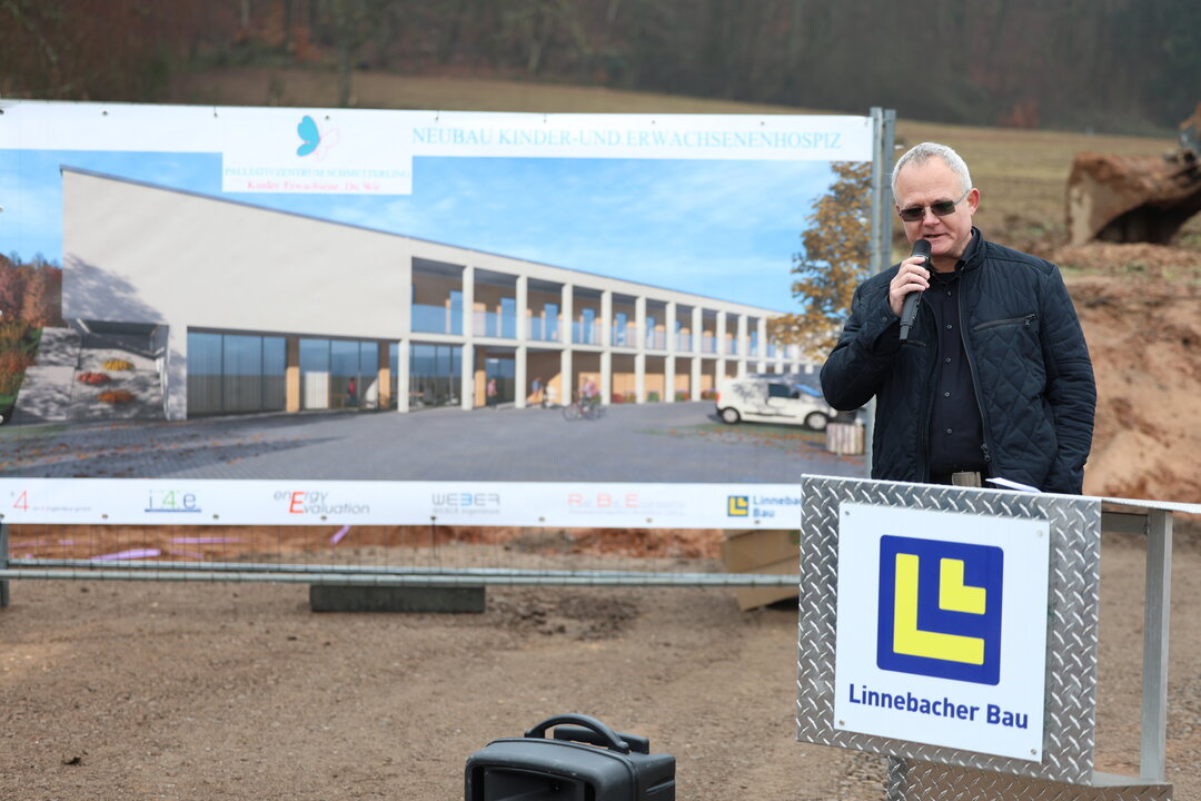 Der mit der Planung und Ausführung beauftragte Architekt Roland Damm, Inhaber des Architekturbüros A plus 4, dankte für das Vertrauen in sein Schaffen. Er dankte vor allem auch seinen Mitarbeitern und den weiteren beteiligten Planern für deren Engagement. Das Projekt sei einmalig: „Wir wollen ein Leuchtturmprojekt – altersübergreifend für acht Kinder und 16 Erwachsene unter einem Dach. Alle sind auf Sicht, aber in eigenen Räumen verteilt auf 3.200 Quadratmeter. Wir denken das Thema Hospiz neu. Zeitgemäße neue Lösungen für ein Zuhause auf Zeit mit Empathie und Menschenwürde.“
